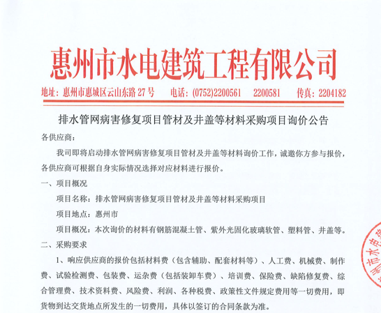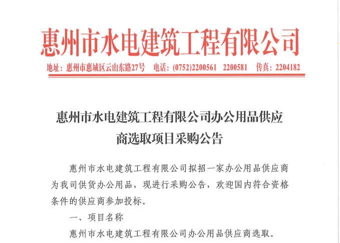 惠州市水電建筑工程有限公司成立于一九六四年四月,隸屬惠州市水務(wù)集團(tuán)有限公司,是一家國(guó)有綜合性施工企業(yè),主營(yíng)水利水電工程、房屋建筑、市政工程等施工業(yè)務(wù)。公司擁有水利水電工程施工總承包一級(jí)、建筑工程施工總承包一級(jí)、市政公用工程施工總承包一級(jí)、公路工程施工總承包三級(jí),公路路基、路面及建筑裝修裝飾專業(yè)承包二級(jí),環(huán)保工程、機(jī)電安裝、河湖整治、輸變電工程專業(yè)承包三級(jí)等經(jīng)營(yíng)資質(zhì)……